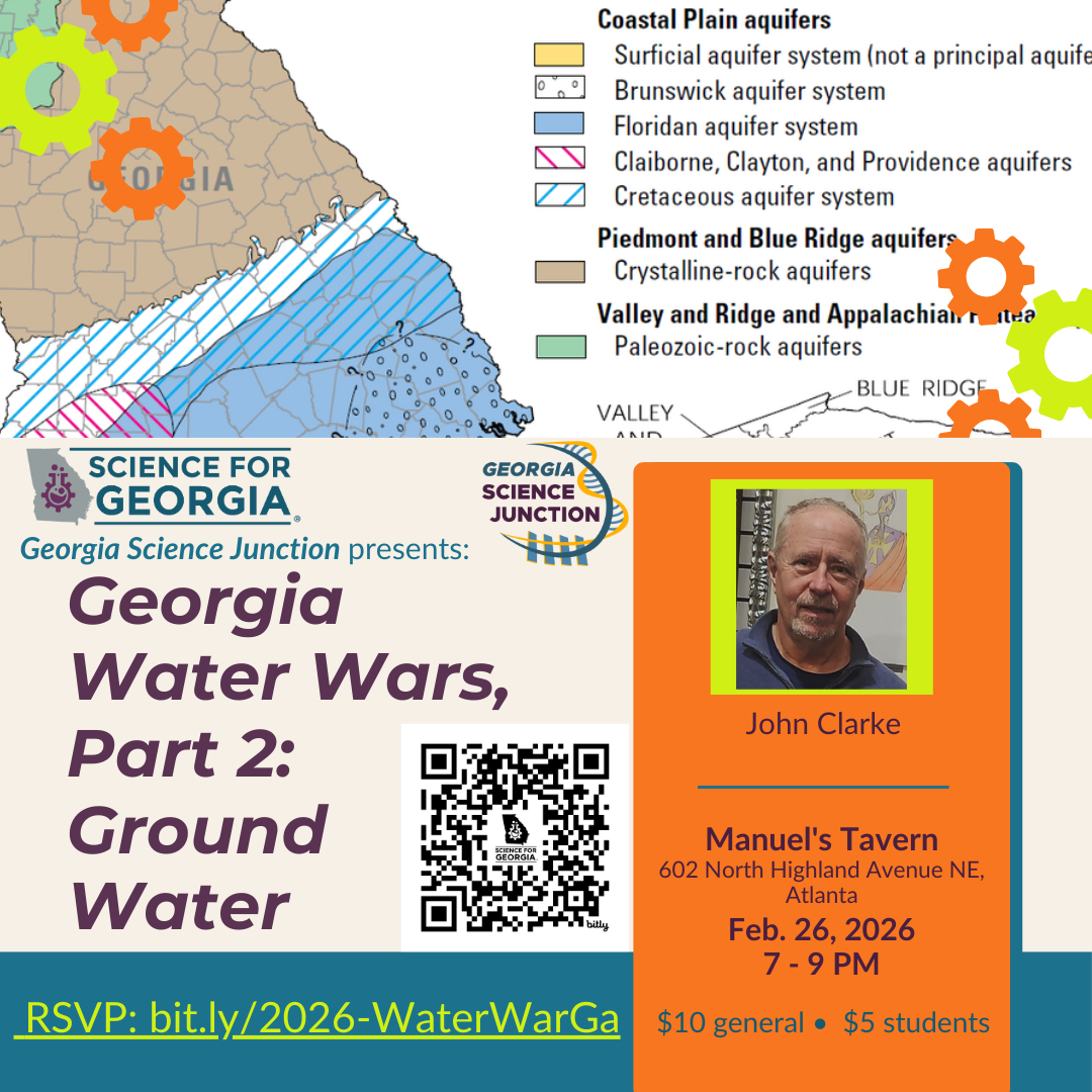 Georgia Water Wars—Conflicts over our most precious resource, Part 2—Groundwater Thurs, Feb 26th, 7-8:30 pm In-Person and Streaming Stream it here : Location: Manuel's Tavern, 602 N Highland Ave NE,…